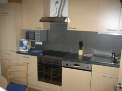 Küche mit Ceranfeld, Backrohr, Micro und Geschirrspüler.